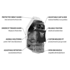Lightweight, durable, this inside-the-waistband holster is manufactured in the United States utilizing .08-inch KYDEX, a material that adds just three ounces in weight but is thick and rigid enough to maintain its structure even under the most demanding conditions. With a thin profile and readily adjustable retention pressure and carry angle, this holster offers ideal concealment, comfort, protection, and durability.