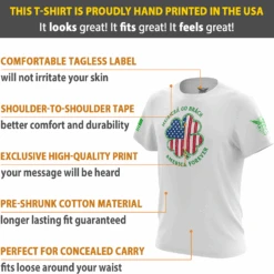 Wear this shirt loud and proud! Our exclusive shirt is proudly 100% MADE IN THE USA. That’s right – from where the cotton is grown all the way to where the bad*** design was printed – EVERYTHING about this item was made right here in America! Now you can stop buying other brands’ so-called “patriotic” shirts that were made overseas.