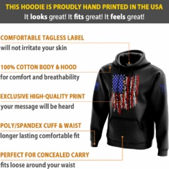 Wear this hoodie loud and proud! Our exclusive hoodie is proudly 100% MADE IN THE USA. That’s right – from where the cotton is grown all the way to where the bad*** design was printed – EVERYTHING about this item was made right here in America! Now you can stop buying other brands’ so-called “patriotic” hoodies that were made overseas.