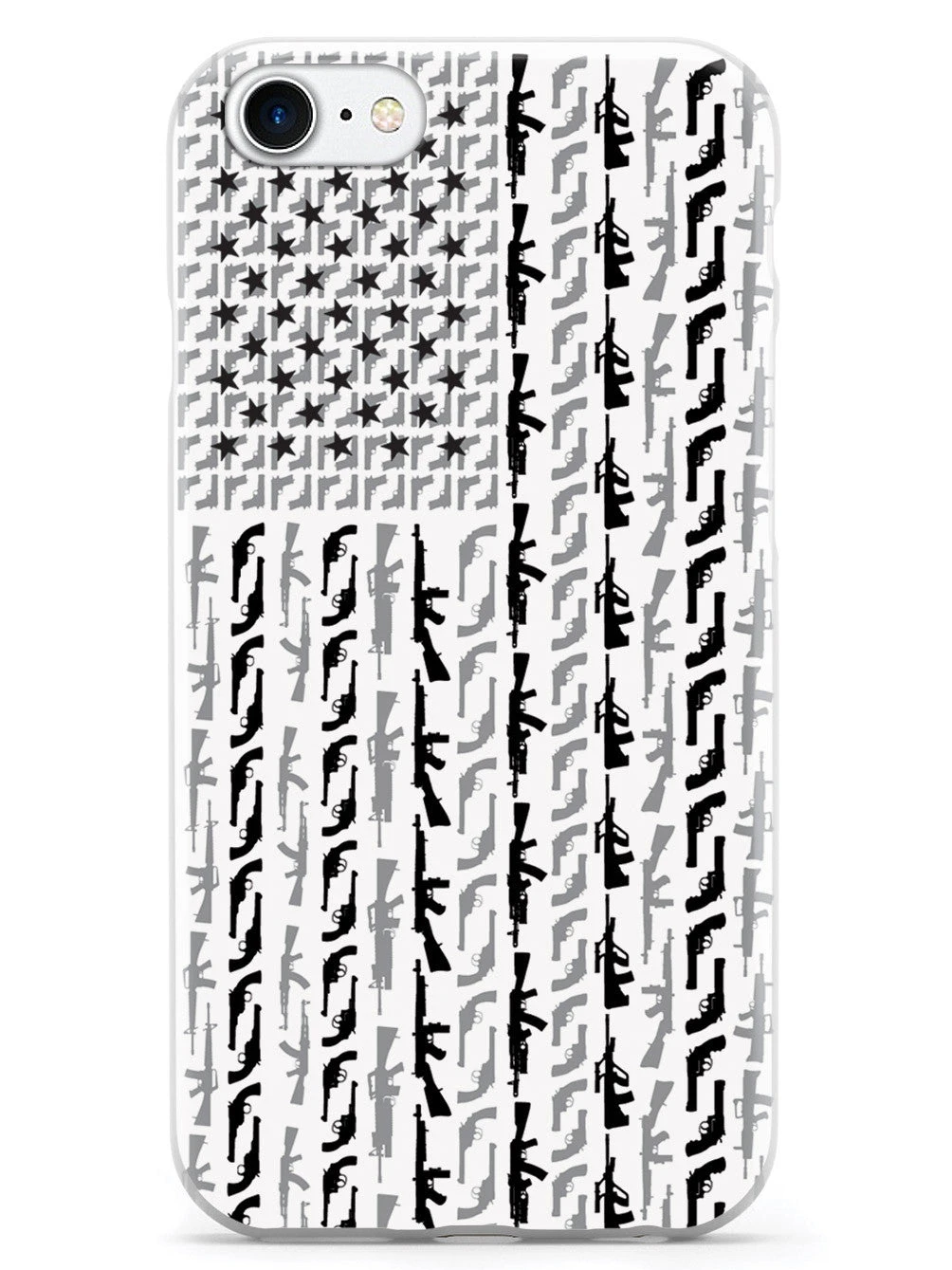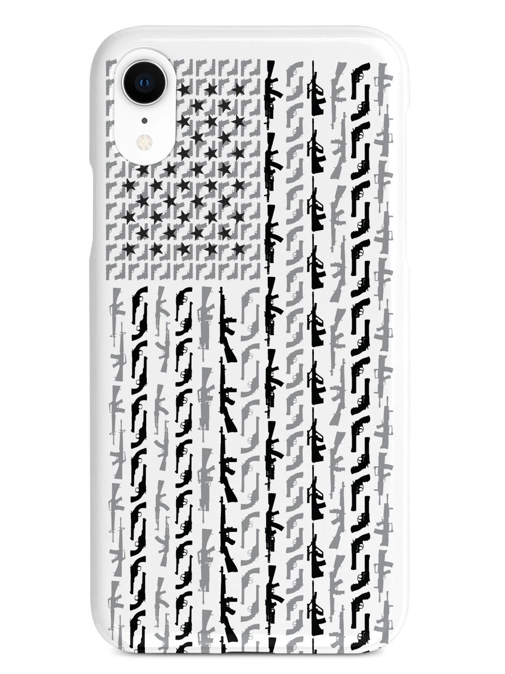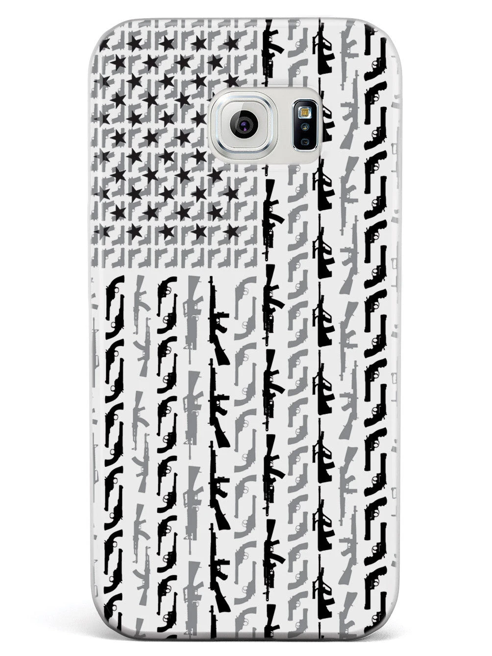 Give your cell phone a unique style all its own. This American Flag in Guns – Black and White Case was professionally created and printed in the United States! Textured printing raises parts of the images, creating a unique feel like no other case.