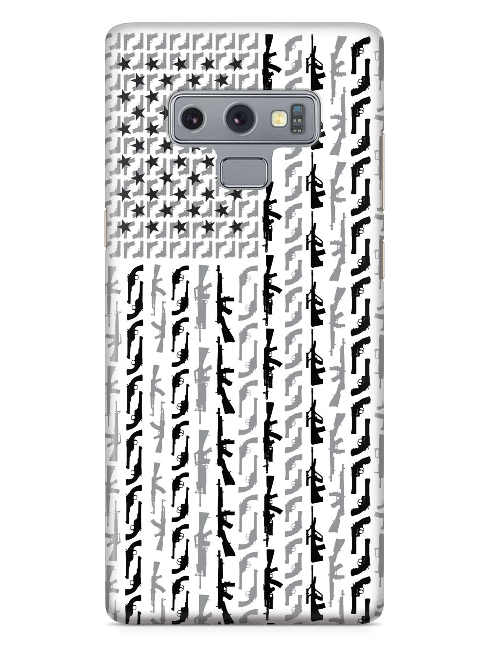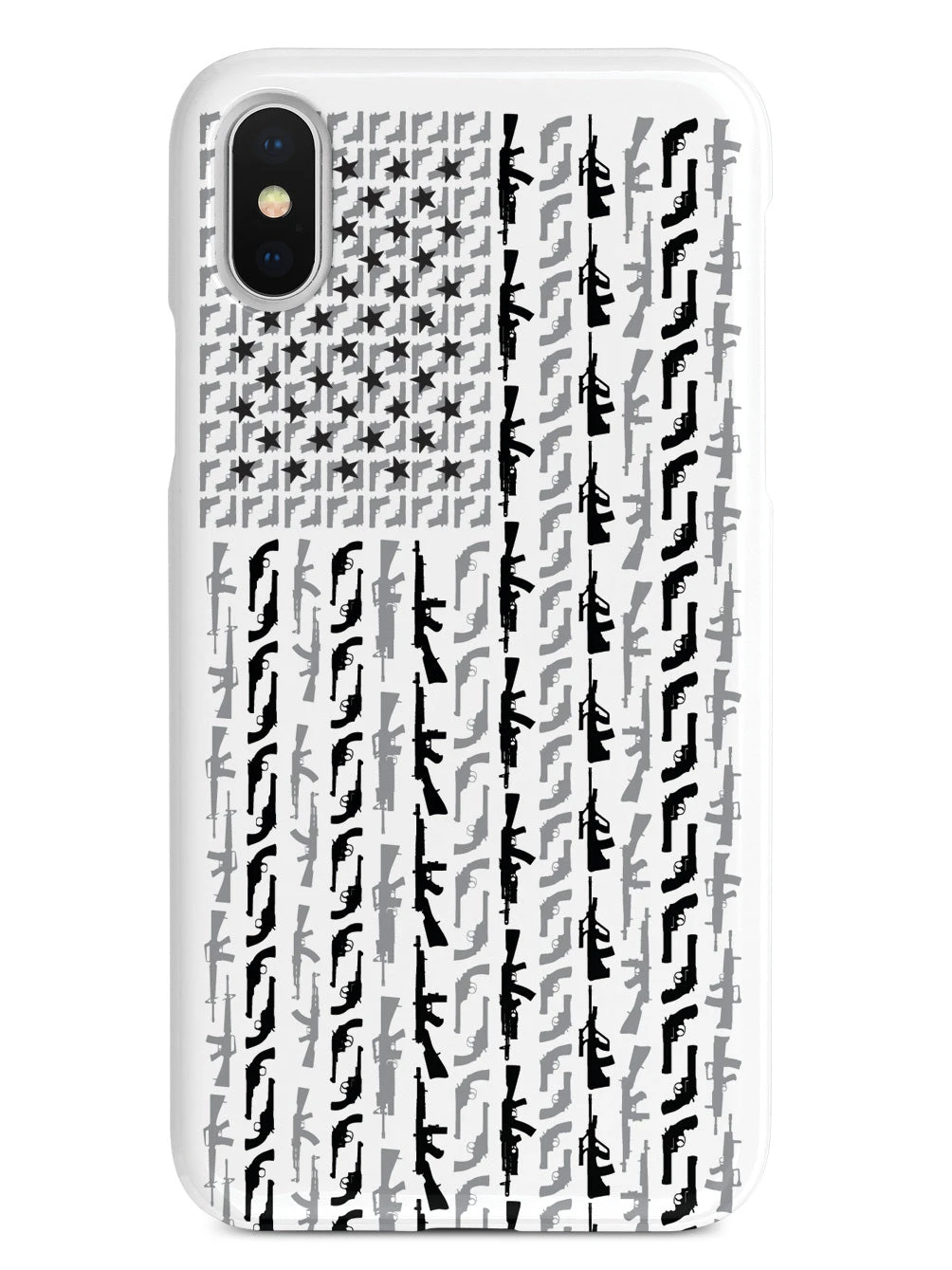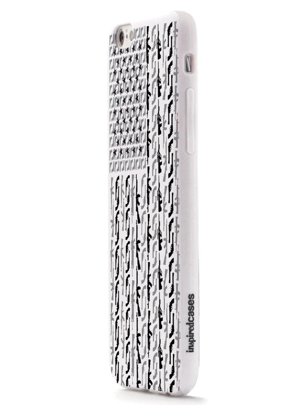 Give your cell phone a unique style all its own. This American Flag in Guns – Black and White Case was professionally created and printed in the United States! Textured printing raises parts of the images, creating a unique feel like no other case.