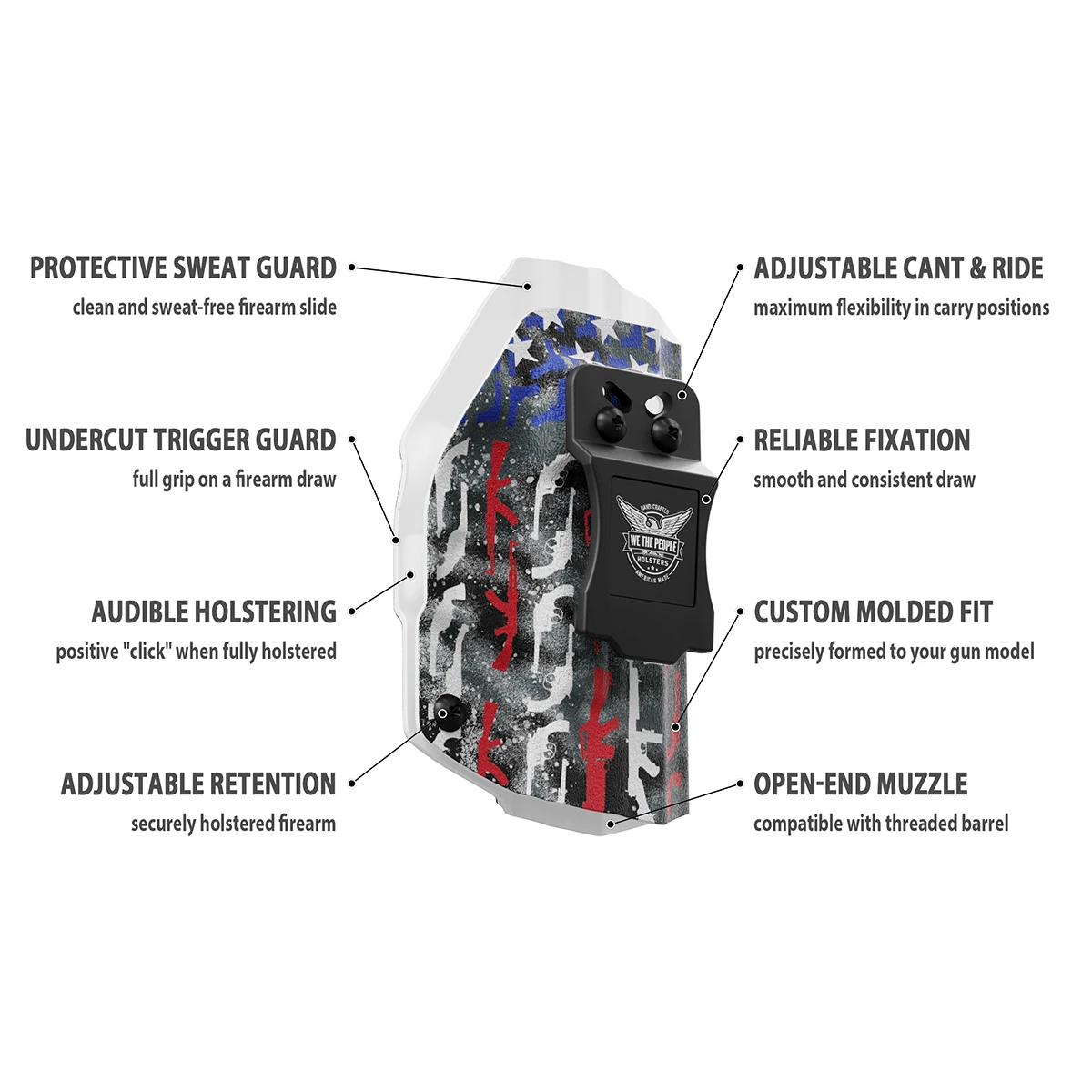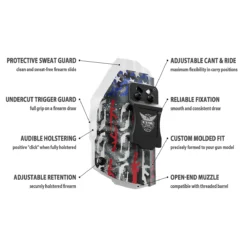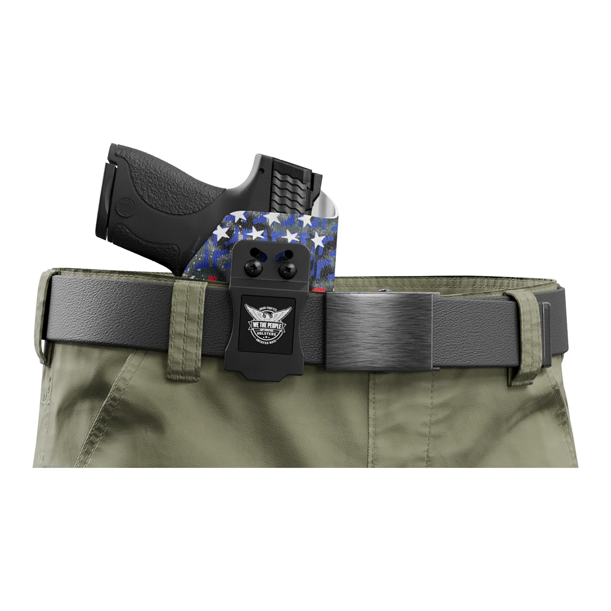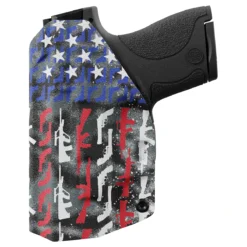 Custom designed, inside-the-waistband, printed Kydex holster supporting our Law Enforcement officers around the country. This holster features adjustable cant and ride and is made out of strong .08 thick Kydex. Hand made in the USA (pictured gun is an example please choose your gun type and side from the menu)