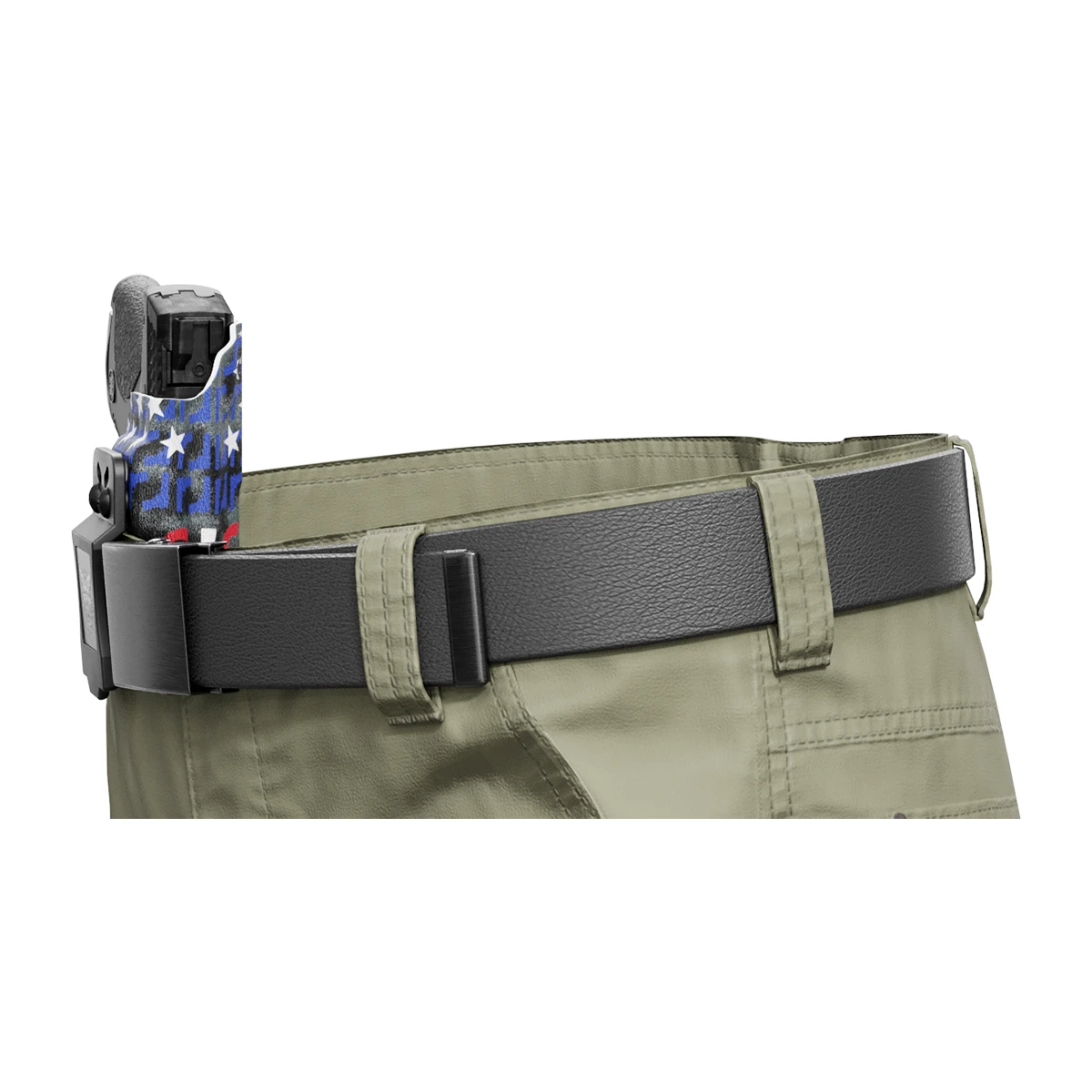 Lightweight, durable, this inside-the-waistband holster is manufactured in the United States utilizing .08-inch KYDEX, a material that adds just three ounces in weight but is thick and rigid enough to maintain its structure even under the most demanding conditions. With a thin profile and readily adjustable retention pressure and carry angle, this holster offers ideal concealment, comfort, protection, and durability.