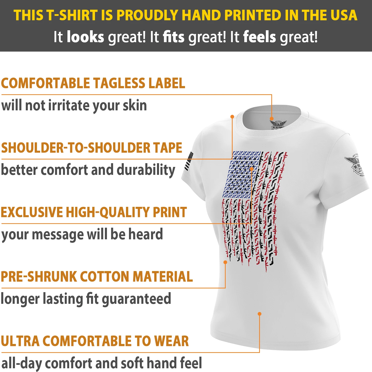 American Flag In Guns – Patriotic Colors Women’s Short Sleeve Shirt