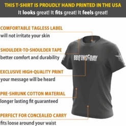 Wear this shirt loud and proud! Our exclusive shirt is proudly 100% MADE IN THE USA. That’s right – from where the cotton is grown all the way to where the bad*** design was printed – EVERYTHING about this item was made right here in America! Now you can stop buying other brands’ so-called “patriotic” shirts that were made overseas.