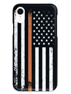 Give your cell phone a unique style all its own. This Downward American Flag – Thin Orange Line Case was professionally created and printed in the United States! Textured printing raises parts of the images, creating a unique feel like no other case.