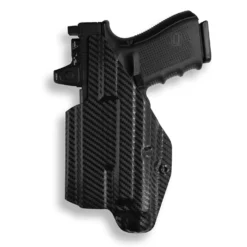 This comfortable and discreet holster is made out of durable Kydex and designed specifically for the Glock 19/19X MOS with Streamlight TLR-1/1S/HL Light Red Dot Optic Cut. By using Kydex we are able to keep a thin of a profile as possible ensuring concealment under all kinds of clothing.