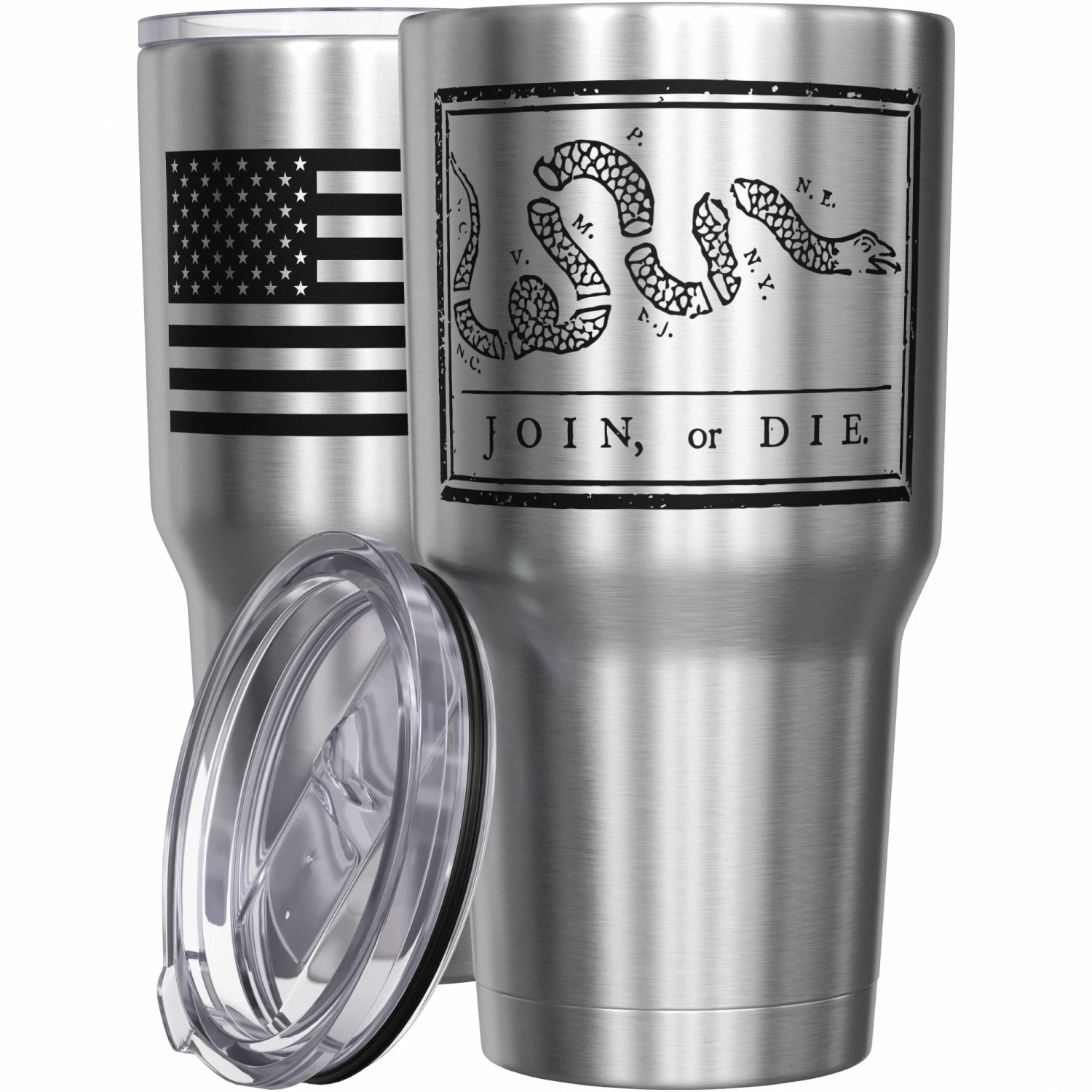 Be the first to review “Join Or Die + American Flag Stainless Steel Tumbler” Cancel reply