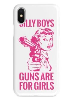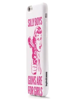 Give your device a unique style all its own. This Silly Boys, Guns are for Girls – Pink Text Case was professionally created and printed in the United States! Textured printing raises parts of the images, creating a unique feel like no other case.