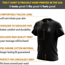 Wear this shirt loud and proud! Our exclusive shirt is proudly 100% MADE IN THE USA. That’s right – from where the cotton is grown all the way to where the bad*** design was printed – EVERYTHING about this item was made right here in America! Now you can stop buying other brands’ so-called “patriotic” shirts that were made overseas.
