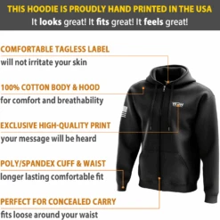 Wear this zip hoodie loud and proud! Our exclusive zipper hoodie is proudly 100% MADE IN THE USA. That’s right – from where the cotton is grown all the way to where the bad*** design was printed – EVERYTHING about this item was made right here in America! Now you can stop buying other brands’ so-called “patriotic” hoodies that were made overseas.